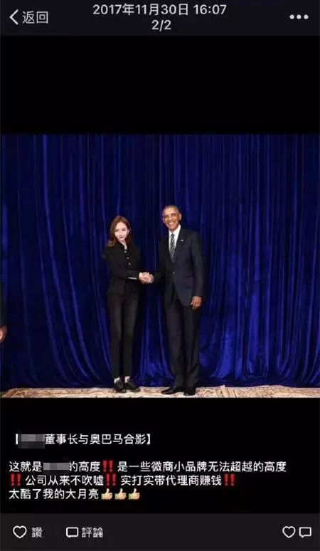 所以,奥巴马是活的奥巴马,但朋友圈文案写的“亲自接见”、“会晤”、“历史性的一刻”就略为尴尬了。